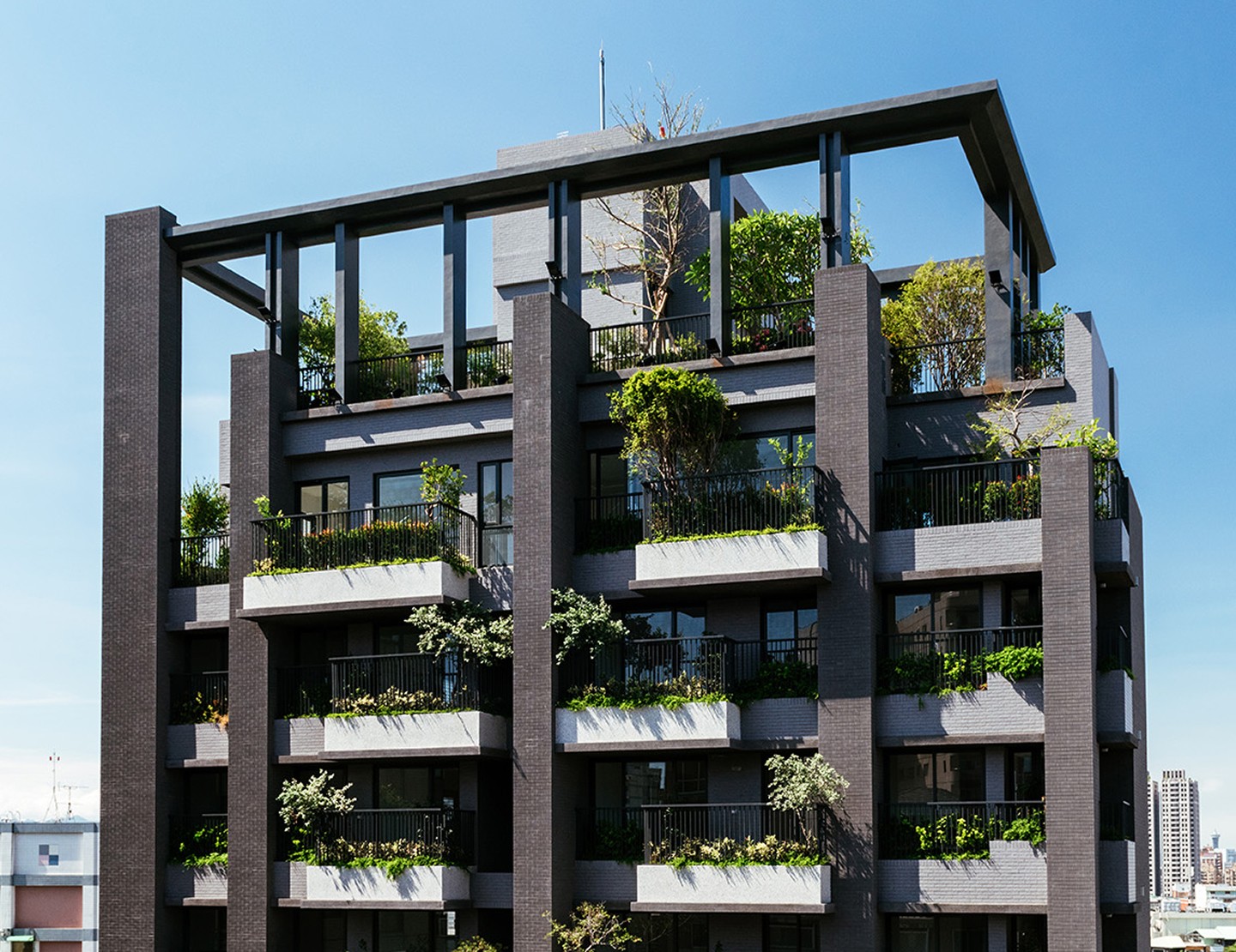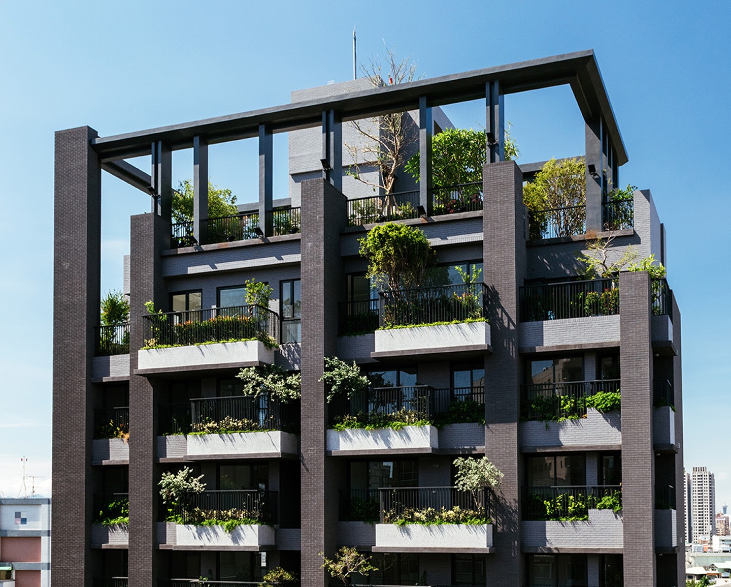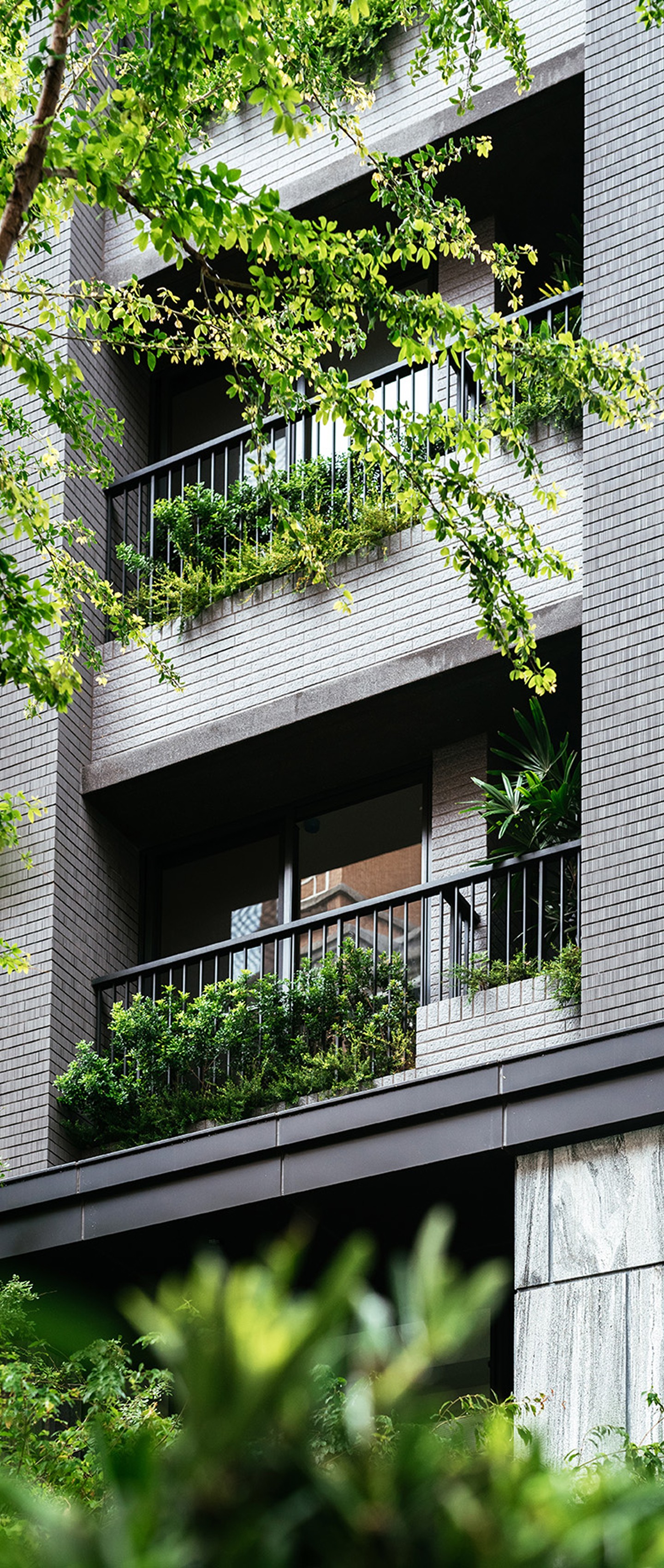 錯落有致的宜居陽台,生動綠意拾級而上。延伸至樓頂觀松平台,入茶屋窗景。淡雅閒情,悠遊自得。