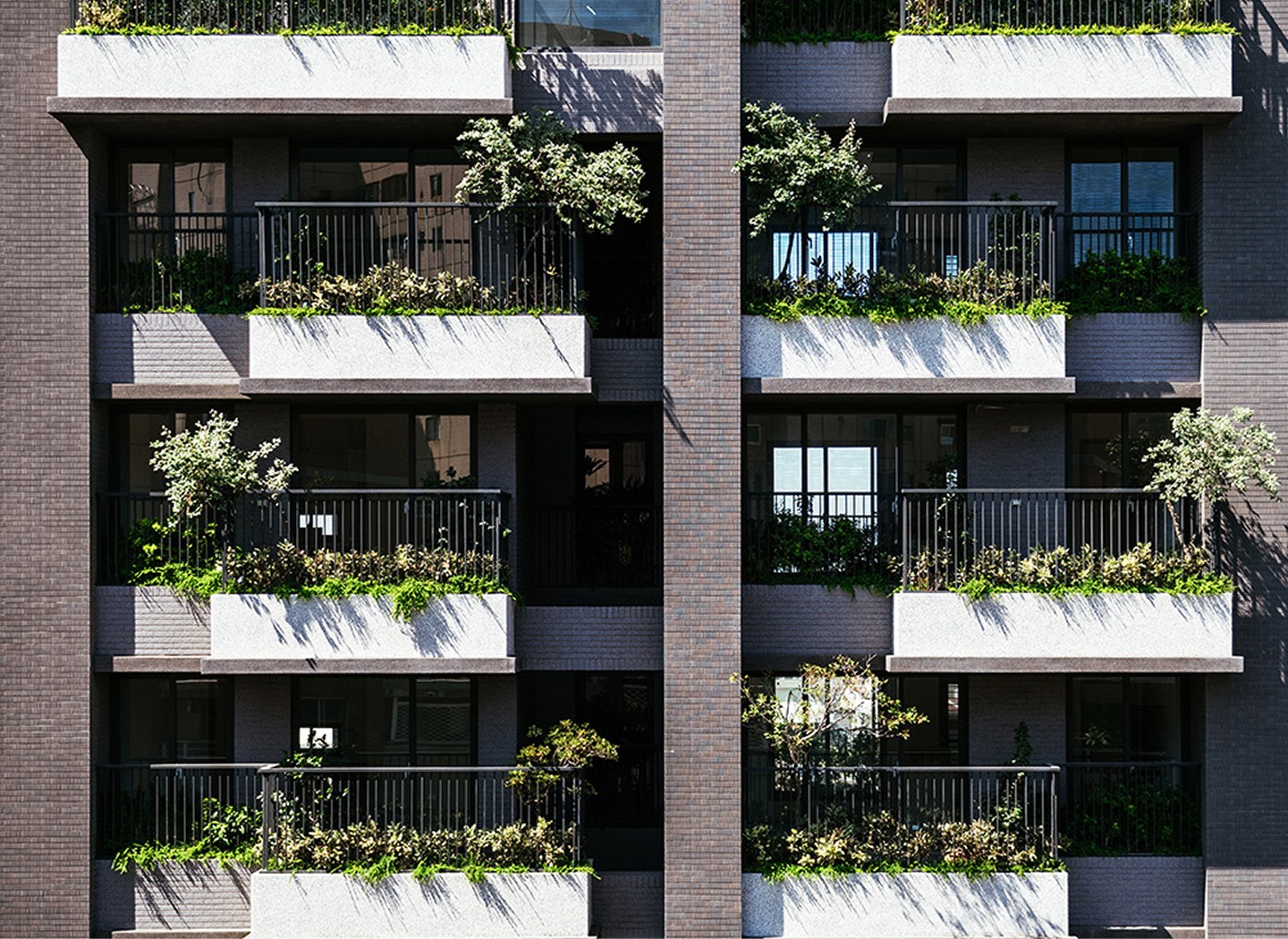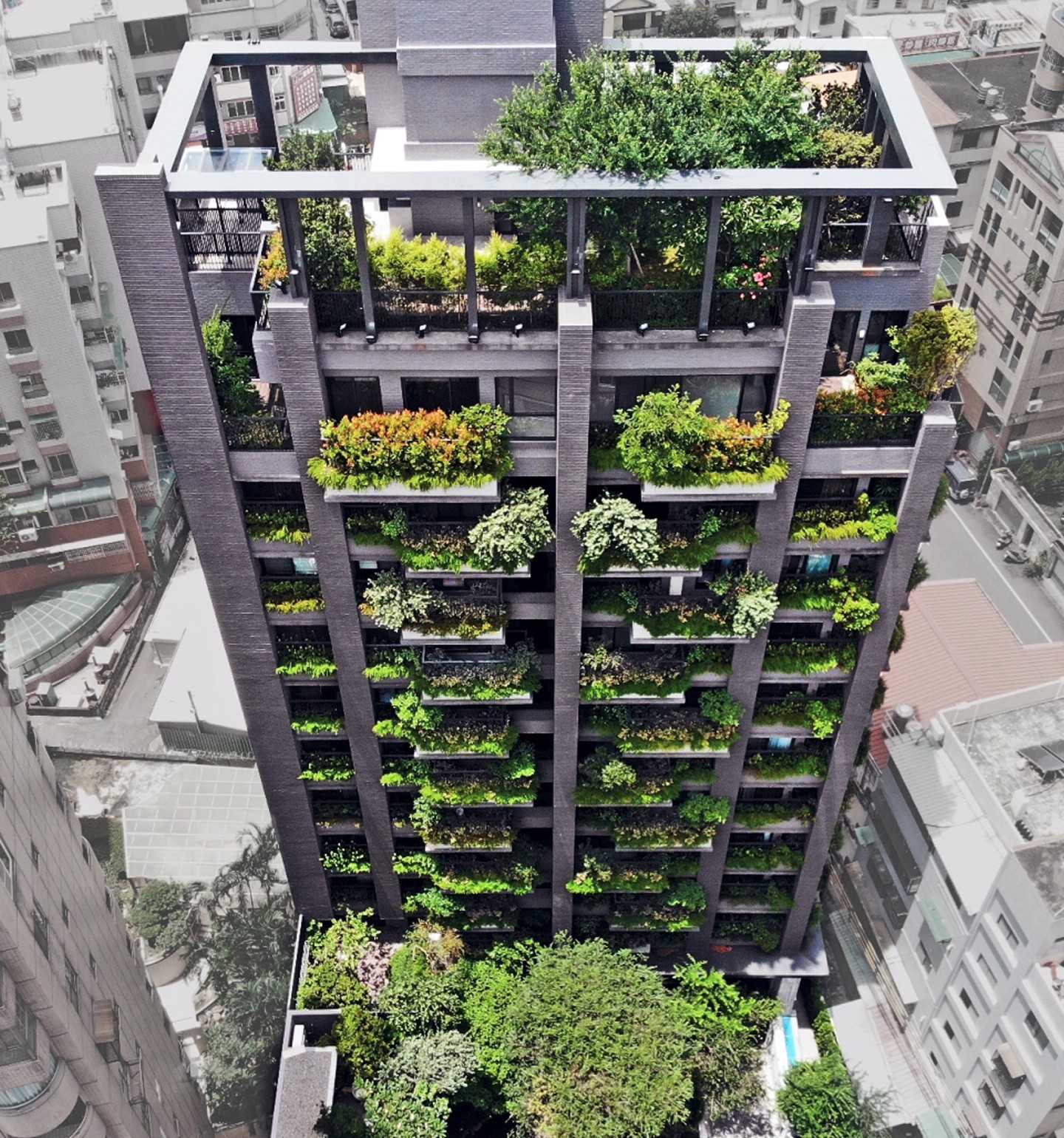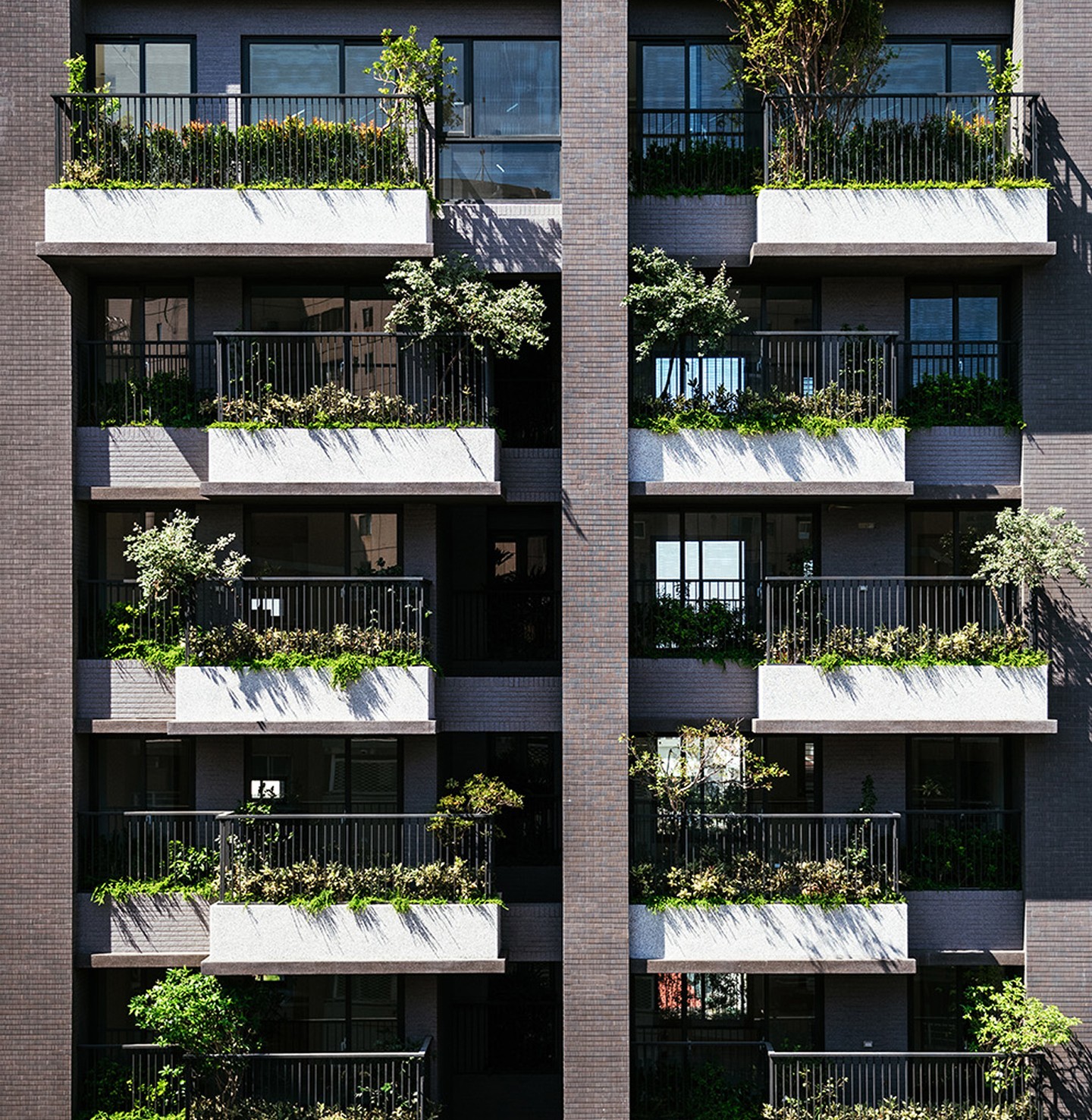 錯落有致的宜居陽台,生動綠意拾級而上。延伸至樓頂觀松平台,入茶屋窗景。淡雅閒情,悠遊自得。