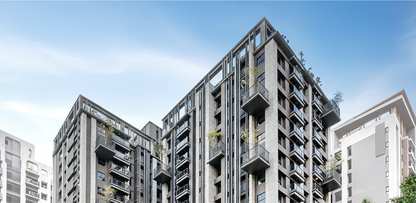 錯落有致的宜居陽台,生動綠意拾級而上。延伸至樓頂觀松平台,入茶屋窗景。淡雅閒情,悠遊自得。